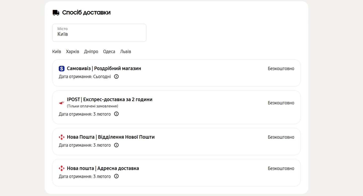 Виберіть найбільш зручний для вас спосіб отримання замовлення: