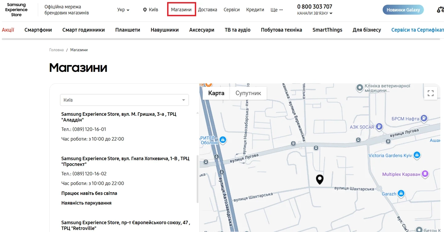 - Офіційні брендові магазини Samsung Experience Store. Це найкращий варіант для тих, хто хоче отримати максимум сервісу. Наші магазини розташовані в найбільших містах України (Київ, Дніпро, Львів, Одеса та ін.).