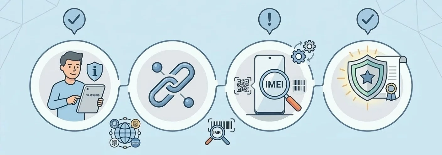 - Перевірка за IMEI або серійним номером: Перейдіть на офіційний сервіс Samsung для перевірки пристрою. Введіть 15-значний код IMEI (для смартфонів і планшетів) або серійний номер (S/N) для побутової техніки. Система підтвердить, чи призначений товар для продажу в Україні та чи діє на нього офіційна підтримка.