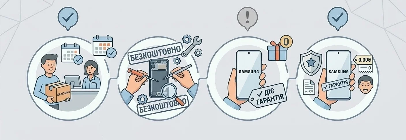 Офіційна гарантія в Samsung Experience Store забезпечує відсутність прихованих платежів під час звернення до авторизованого сервісного центру. Однак варто врахувати кілька важливих моментів: