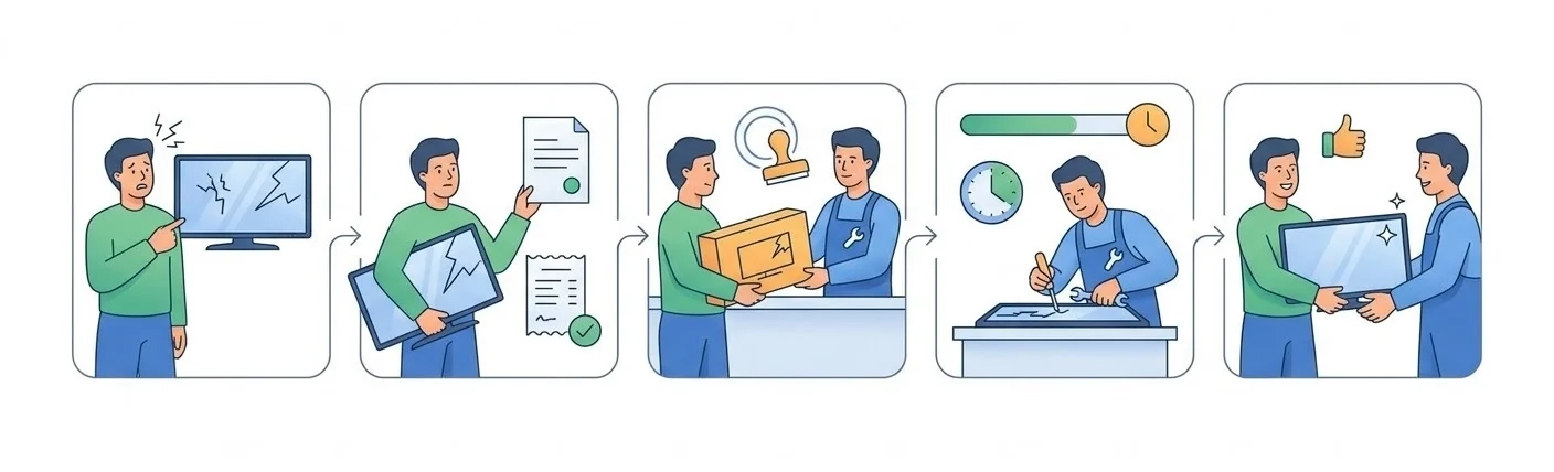 - Виїзд майстра додому. Для великогабаритної техніки (телевізори від 32", холодильники, пральні машини) передбачений виїзд майстра для ремонту на місці.