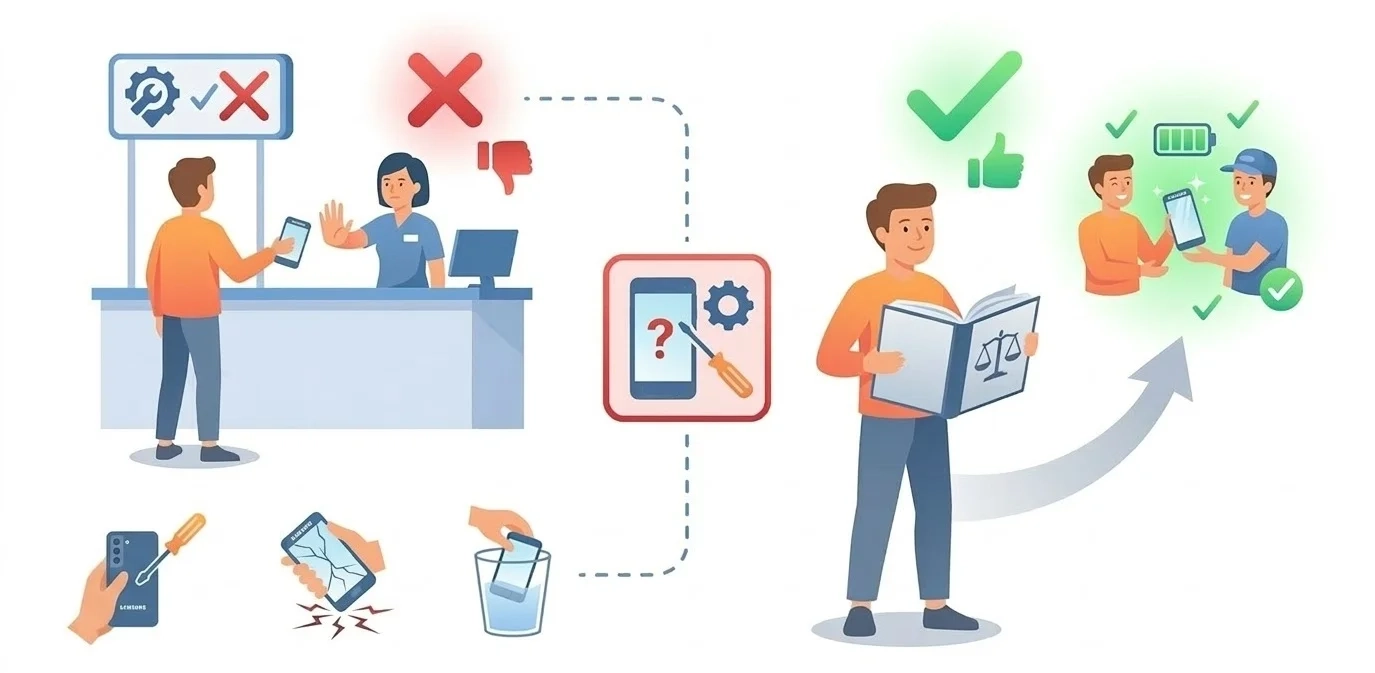 - Ознайомтеся з доказами: У разі механічних пошкоджень або слідів вологи майстри зазвичай надають фотофіксацію дефекту (наприклад, корозія на платі або тріщина під сенсорним склом).