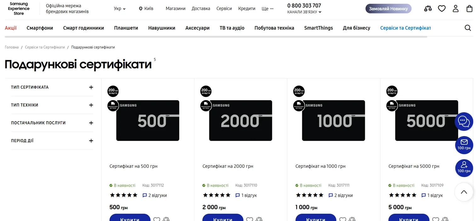 - Асортимент без обмежень: Сертифікат діє на весь асортимент товарів — від флагманських смартфонів серії Galaxy до оригінальних чохлів і носимих гаджетів.