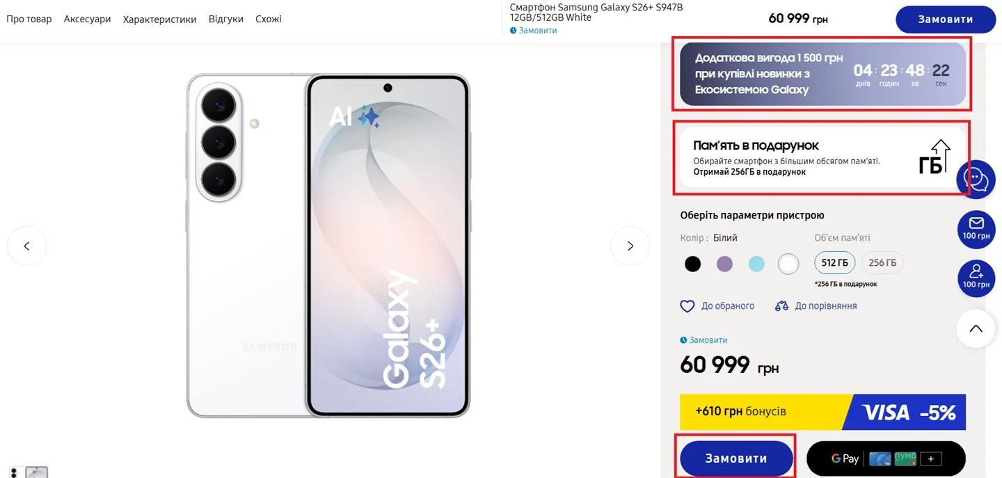 - Спеціальні пропозиції. Попередні замовлення супроводжуються цінними бонусами від Samsung — це можуть бути подарунки (наприклад, навушники або захисні аксесуари), додаткові знижки за програмою Trade-In або сертифікати на наступні покупки.