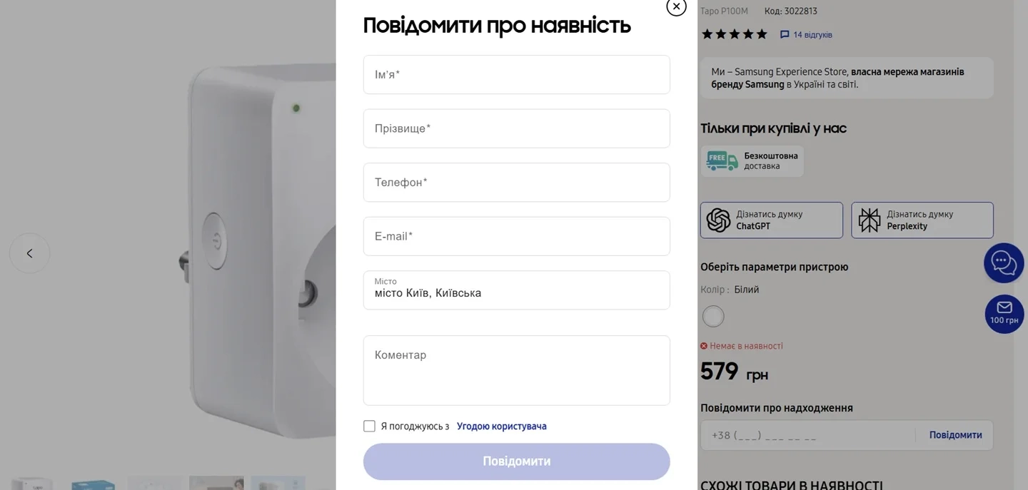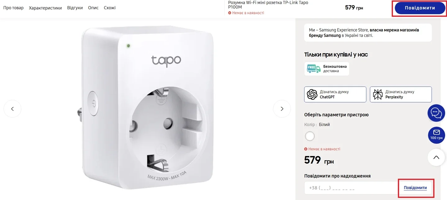- Скористайтеся кнопкою поряд з бажаним товаром «Повідомити».
