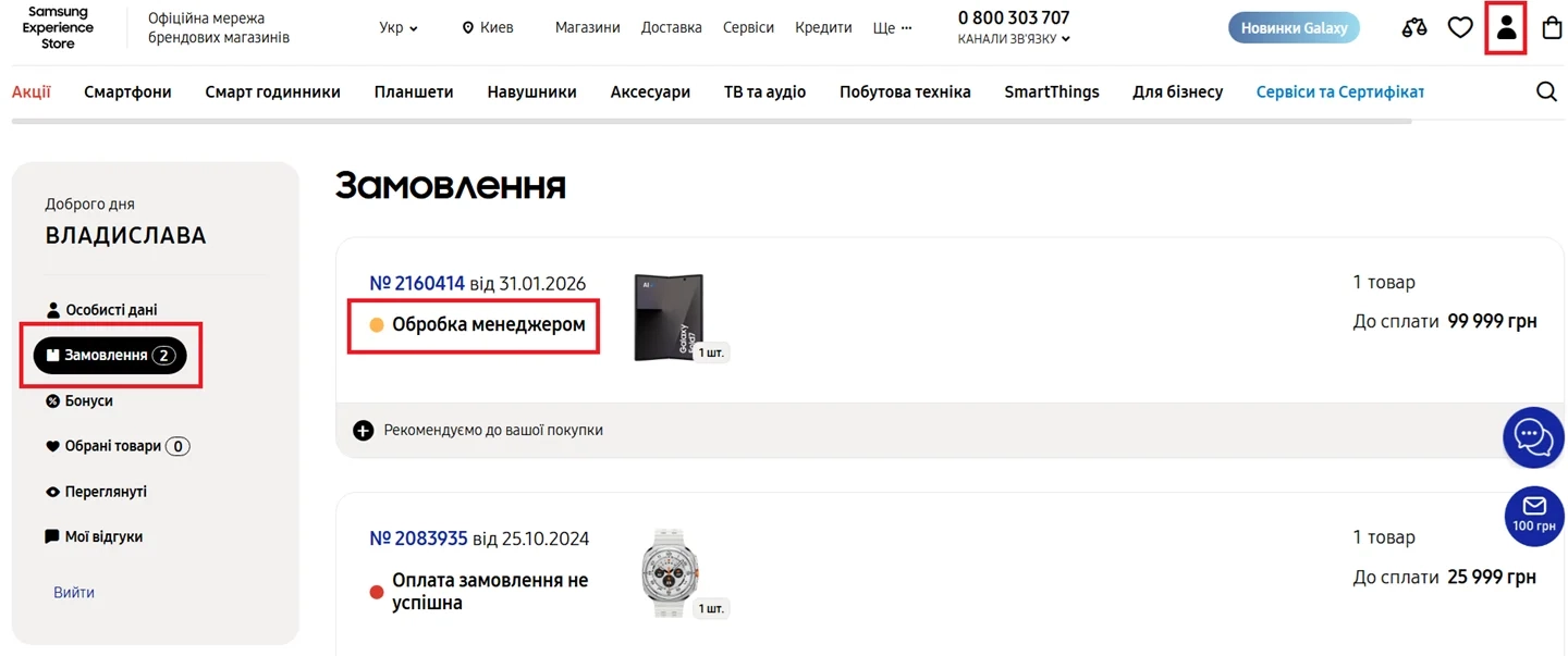 - Особистий кабінет. Якщо ви зареєстровані, зайдіть в розділ «Мої замовлення». Там з'явиться новий запис зі статусом «Обробляється менеджером». Це означає, що інформація вже надійшла в нашу систему і товар резервується на складі.