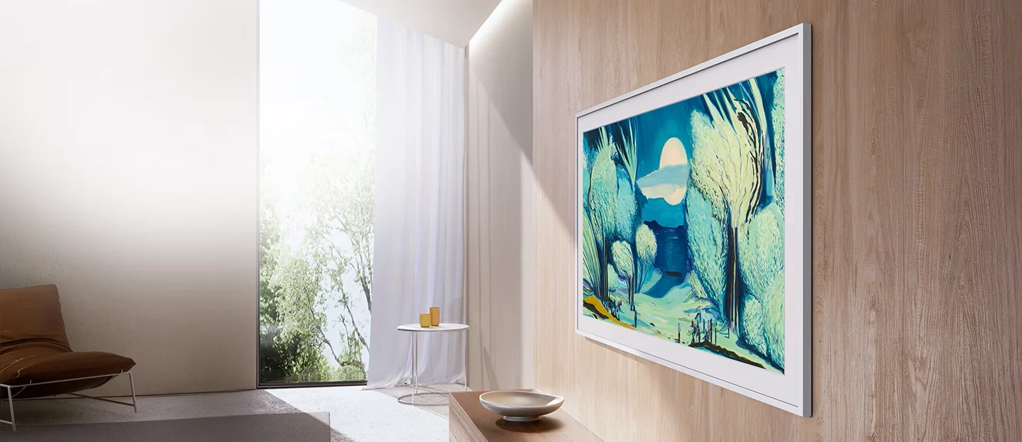 - Благодаря дизайну рамки вы можете использовать телевизор в качестве декора, демонстрируя произведения искусства и фотографии в режиме Art Mode.