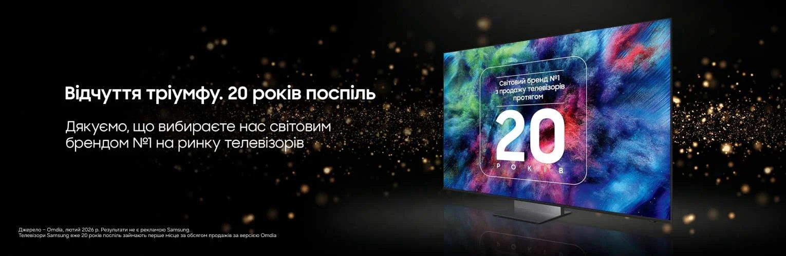 Компания Samsung Electronics Co., Ltd. сегодня объявила, что уже 20 лет подряд занимает первое место в мире на рынке телевизоров, отмечая два десятилетия лидерства в сфере производства ТВ. Samsung занимает лидирующие позиции на мировом рынке телевизоров с 2006 года, и, по данным маркетинговой компании Omdia, в 2025 году доля компании на мировом рынке телевизоров составила 29,1%. Это достижение подкрепляет лидерство Samsung в сфере премиальных, сверхбольших и новых технологий дисплеев.