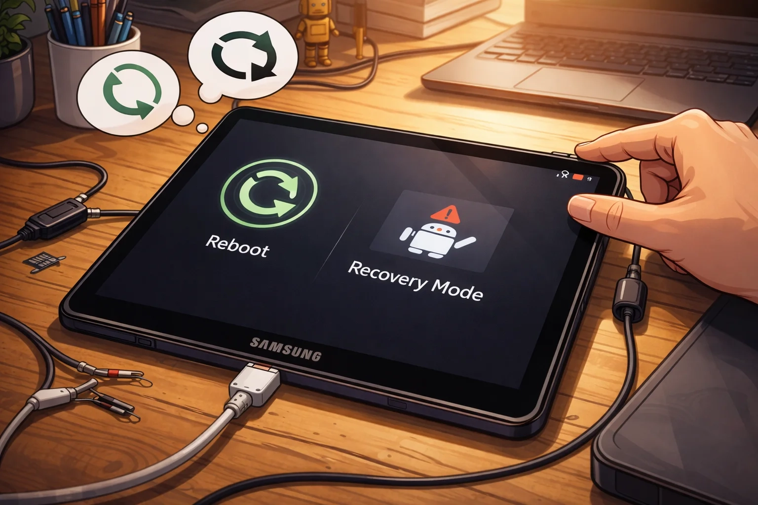 Через Recovery Mode можно очистить кэш или перепрошить систему без потери информации.