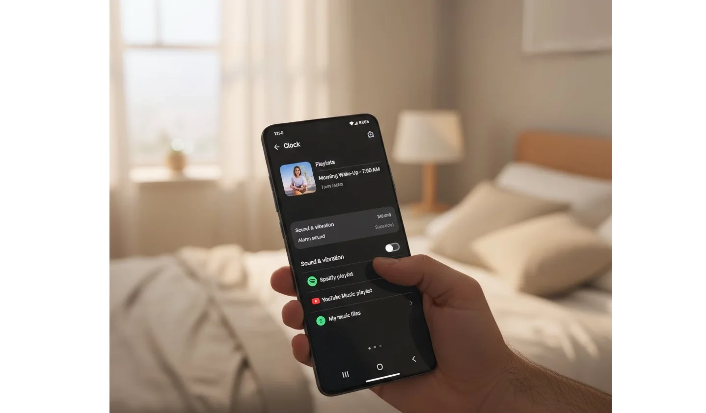 Власники девайсів Galaxy можуть використовувати розширену інтеграцію зі стрімінговими сервісами, такими як Spotify або YouTube Music. У меню вибору звуку можна просто вибрати плейлист, і щоранку на вас чекатиме новий трек. Якщо ви налаштували смарт-годинник з телефоном, звук буде дублюватися і на зап'ясті. До речі, сучасні смарт-годинники дозволяють встановлювати вібрацію різного ритму на додаток до музики для більш м'якого пробудження.