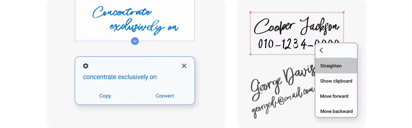 Однією з найважливіших функцій застосунку є можливість рукописного введення. Користувач може створювати записи рукою прямо на телефоні або планшеті за допомогою стилуса S-Pen або пальця, перетворивши екран пристрою в блокнот. Ця функція буде особливо корисна студентам, дизайнерам і людям з візуальним типом мислення.