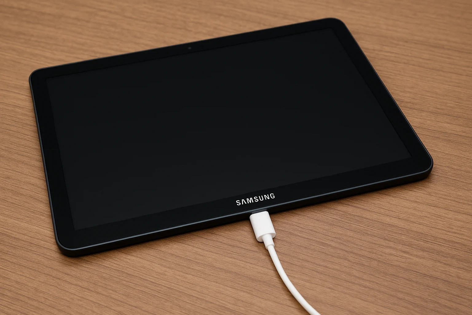 Якщо планшет завис, увімкнути його можна примусовим перезавантаженням: затисніть кнопку живлення і кнопку гучності одночасно на 10-15 секунд, поки пристрій не перезавантажиться.